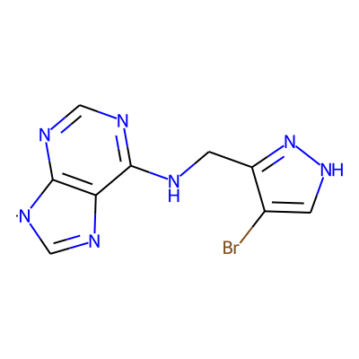 Brc1c[nH]nc1CNc1ncnc2c1N=C[N]2| HBA: | 7 | RingCount: | 3 |