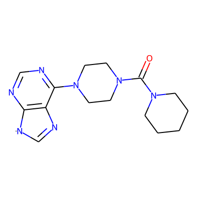 O=C(N1CCCCC1)N1CCN(c2ncnc3c2N=C[N]3)CC1| HBA: | 8 | RingCount: | 4 |
