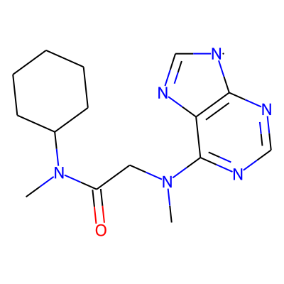 CN(CC(=O)N(C)C1CCCCC1)c1ncnc2c1N=C[N]2| HBA: | 7 | RingCount: | 3 |