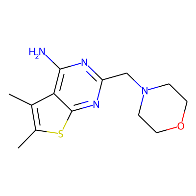 Cc1sc2nc(CN3CCOCC3)nc(N)c2c1C| HBA: | 5 | RingCount: | 3 |