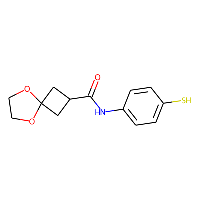 O=C(Nc1ccc(S)cc1)C1CC2(C1)OCCO2| HBA: | 4 | RingCount: | 3 |