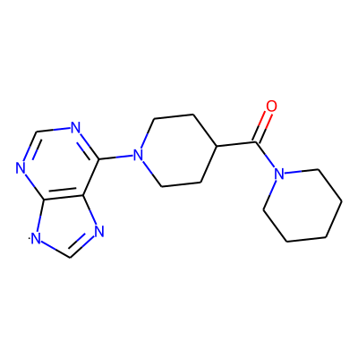 O=C(C1CCN(c2ncnc3c2N=C[N]3)CC1)N1CCCCC1| HBA: | 7 | RingCount: | 4 |