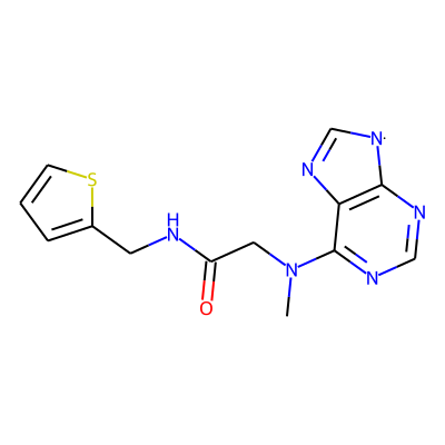 CN(CC(=O)NCc1cccs1)c1ncnc2c1N=C[N]2| HBA: | 7 | RingCount: | 3 |