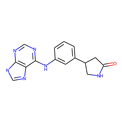 O=C1CC(c2cccc(Nc3ncnc4c3N=C[N]4)c2)CN1| HBA: | 7 | RingCount: | 4 |