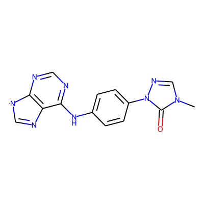 Cn1cnn(-c2ccc(Nc3ncnc4c3N=C[N]4)cc2)c1=O| HBA: | 9 | RingCount: | 4 |
