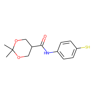 CC1(C)OCC(C(=O)Nc2ccc(S)cc2)CO1| HBA: | 4 | RingCount: | 2 |