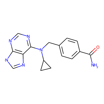 NC(=O)c1ccc(CN(c2ncnc3c2N=C[N]3)C2CC2)cc1| HBA: | 7 | RingCount: | 4 |