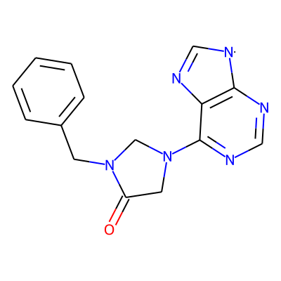 O=C1CN(c2ncnc3c2N=C[N]3)CN1Cc1ccccc1| HBA: | 7 | RingCount: | 4 |