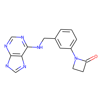 O=C1CCN1c1cccc(CNc2ncnc3c2N=C[N]3)c1| HBA: | 7 | RingCount: | 4 |