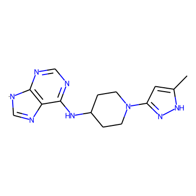 Cc1cc(N2CCC(Nc3ncnc4c3N=C[N]4)CC2)n[nH]1| HBA: | 8 | RingCount: | 4 |