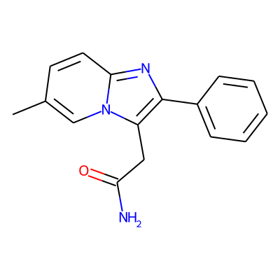 Cc1ccc2nc(-c3ccccc3)c(CC(N)=O)n2c1| HBA: | 4 | RingCount: | 3 |