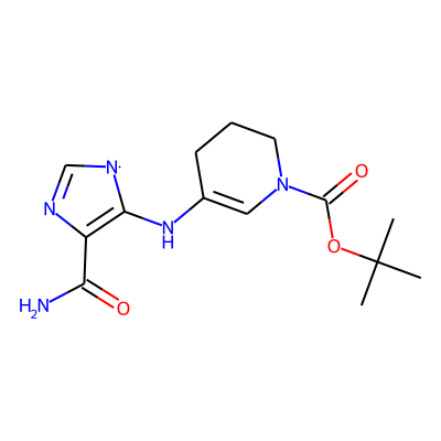 CC(C)(C)OC(=O)N1C=C(NC2=C(C(N)=O)N=C[N]2)CCC1| HBA: | 8 | RingCount: | 2 |