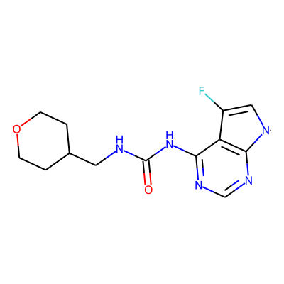 O=C(NCC1CCOCC1)Nc1ncnc2c1C(F)=C[N]2| HBA: | 7 | RingCount: | 3 |