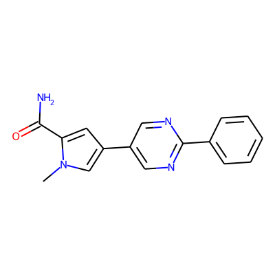 Cn1cc(-c2cnc(-c3ccccc3)nc2)cc1C(N)=O| HBA: | 5 | RingCount: | 3 |