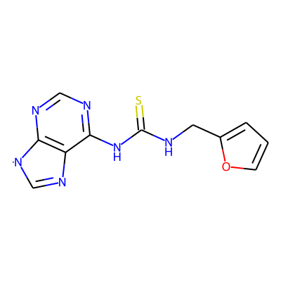 S=C(NCc1ccco1)Nc1ncnc2c1N=C[N]2| HBA: | 7 | RingCount: | 3 |
