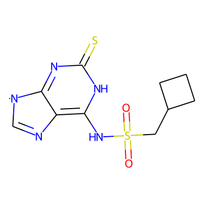 O=S(=O)(CC1CCC1)Nc1[nH]c(=S)nc2c1N=C[N]2| HBA: | 7 | RingCount: | 3 |