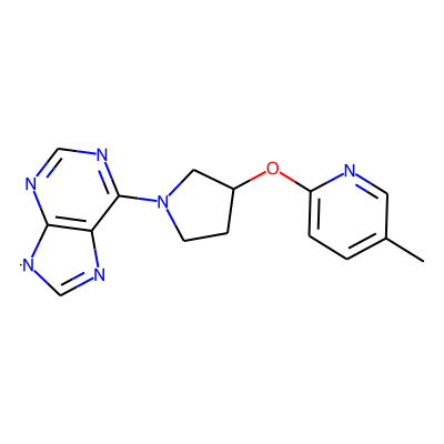 Cc1ccc(OC2CCN(c3ncnc4c3N=C[N]4)C2)nc1| HBA: | 7 | RingCount: | 4 |
