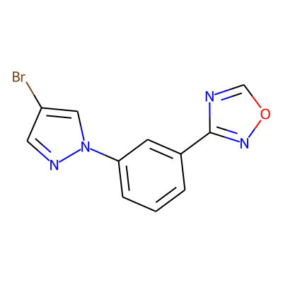 Brc1cnn(-c2cccc(-c3ncon3)c2)c1| HBA: | 5 | RingCount: | 3 |