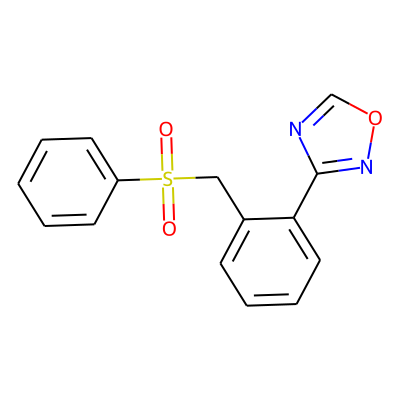 O=S(=O)(Cc1ccccc1-c1ncon1)c1ccccc1| HBA: | 5 | RingCount: | 3 |