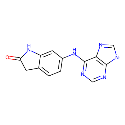 O=C1Cc2ccc(Nc3ncnc4c3N=C[N]4)cc2N1| HBA: | 7 | RingCount: | 4 |