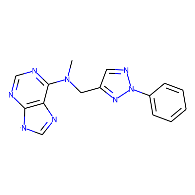 CN(Cc1cnn(-c2ccccc2)n1)c1ncnc2c1N=C[N]2| HBA: | 8 | RingCount: | 4 |