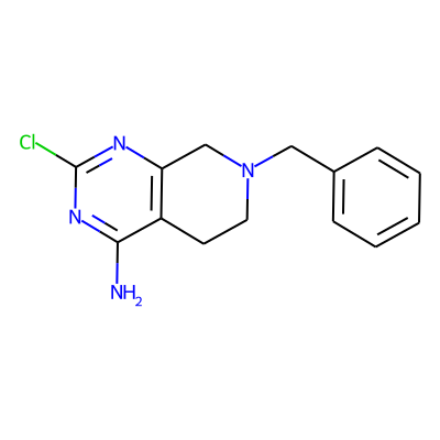 Nc1nc(Cl)nc2c1CCN(Cc1ccccc1)C2| HBA: | 4 | RingCount: | 3 |