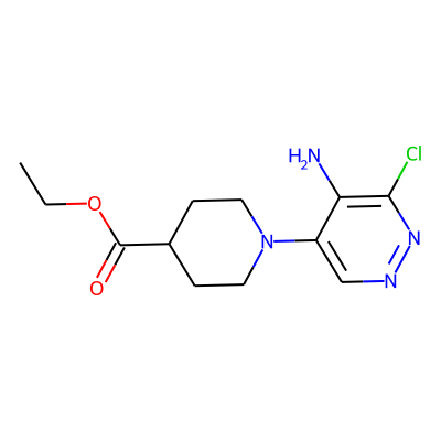 CCOC(=O)C1CCN(c2cnnc(Cl)c2N)CC1| HBA: | 6 | RingCount: | 2 |