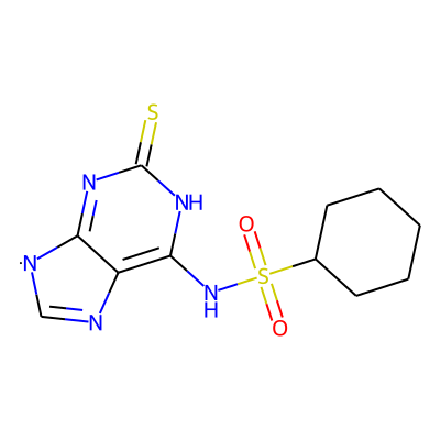 O=S(=O)(Nc1[nH]c(=S)nc2c1N=C[N]2)C1CCCCC1| HBA: | 7 | RingCount: | 3 |