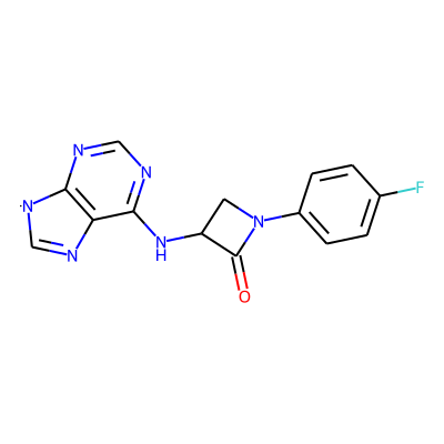 O=C1C(Nc2ncnc3c2N=C[N]3)CN1c1ccc(F)cc1| HBA: | 7 | RingCount: | 4 |