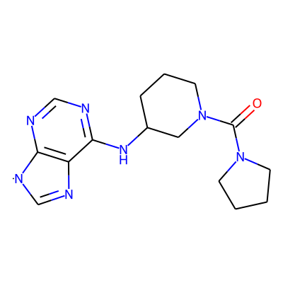 O=C(N1CCCC1)N1CCCC(Nc2ncnc3c2N=C[N]3)C1| HBA: | 8 | RingCount: | 4 |