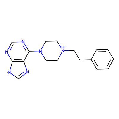 C1=Nc2c(ncnc2N2CC[NH+](CCc3ccccc3)CC2)[N]1| HBA: | 6 | RingCount: | 4 |