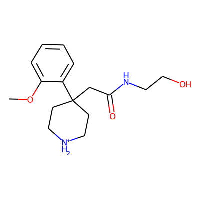 COc1ccccc1C1(CC(=O)NCCO)CC[NH2+]CC1| HBA: | 5 | RingCount: | 2 |
