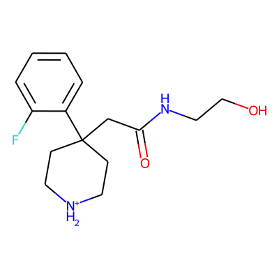O=C(CC1(c2ccccc2F)CC[NH2+]CC1)NCCO| HBA: | 4 | RingCount: | 2 |