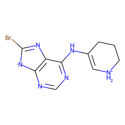 BrC1=Nc2c(ncnc2NC2=C[NH2+]CCC2)[N]1| HBA: | 6 | RingCount: | 3 |