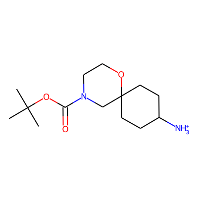 CC(C)(C)OC(=O)N1CCOC2(CCC([NH3+])CC2)C1| HBA: | 5 | RingCount: | 2 |