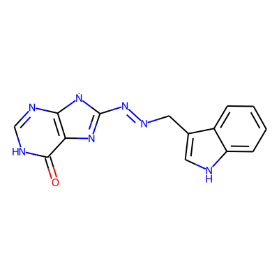 O=c1[nH]cnc2c1nc(/N=N/Cc1c[nH]c3ccccc13)n2[C@@H]1O[C@H](CO)[C@@H](O)[C@H]1OAglycone: