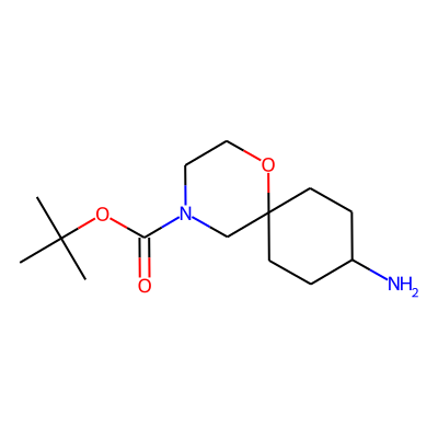 CC(C)(C)OC(=O)N1CCOC2(CCC(N)CC2)C1| HBA: | 5 | RingCount: | 2 |