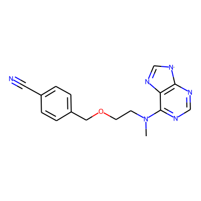 CN(CCOCc1ccc(C#N)cc1)c1ncnc2c1N=C[N]2| HBA: | 7 | RingCount: | 3 |