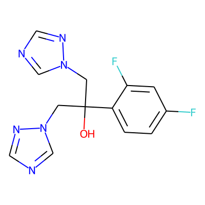 OC(Cn1cncn1)(Cn1cncn1)c1ccc(F)cc1F| HBA: | 7 | RingCount: | 3 |