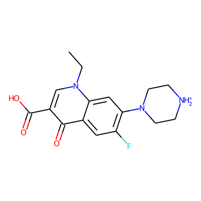 CCn1cc(C(=O)O)c(=O)c2cc(F)c(N3CC[NH2+]CC3)cc21Sugarmoiety: