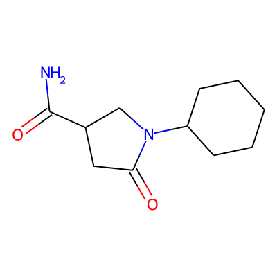 NC(=O)C1CC(=O)N(C2CCCCC2)C1| HBA: | 4 | RingCount: | 2 |