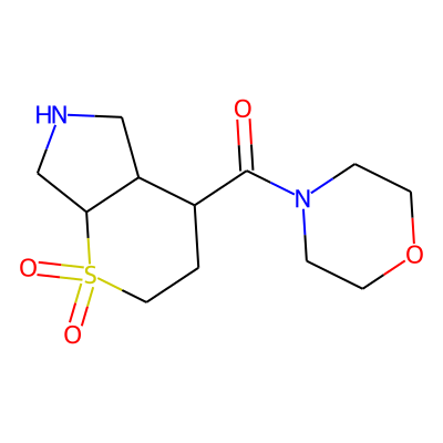 O=C(C1CCS(=O)(=O)C2CNCC12)N1CCOCC1| HBA: | 6 | RingCount: | 3 |