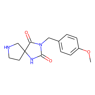 COc1ccc(CN2C(=O)NC3(CCNC3)C2=O)cc1| HBA: | 6 | RingCount: | 3 |