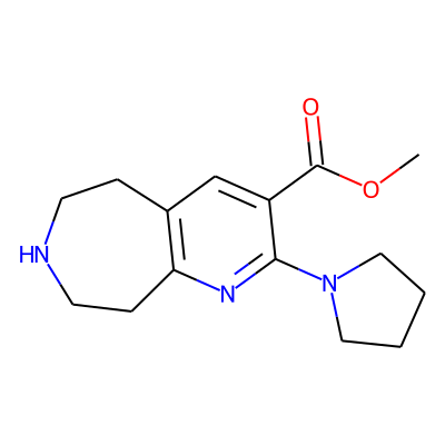 COC(=O)c1cc2c(nc1N1CCCC1)CCNCC2| HBA: | 5 | RingCount: | 3 |