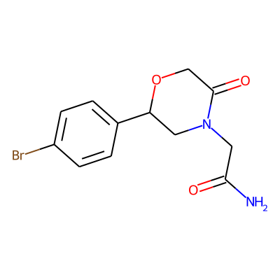 NC(=O)CN1CC(c2ccc(Br)cc2)OCC1=OSugarmoiety: