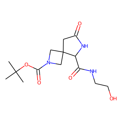 CC(C)(C)OC(=O)N1CC2(CC(=O)NC2C(=O)NCCO)C1| HBA: | 8 | RingCount: | 2 |