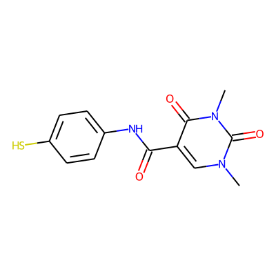 Cn1cc(C(=O)Nc2ccc(S)cc2)c(=O)n(C)c1=O| HBA: | 6 | RingCount: | 2 |