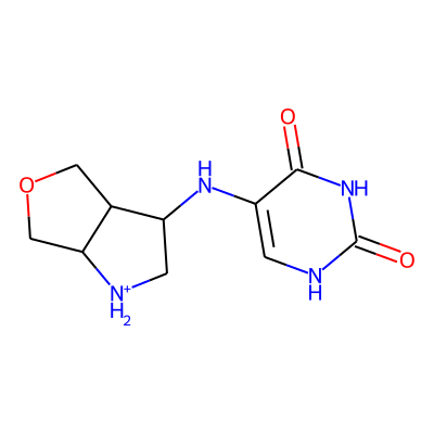 O=c1[nH]cc(NC2C[NH2+]C3COCC23)c(=O)[nH]1| HBA: | 7 | RingCount: | 3 |