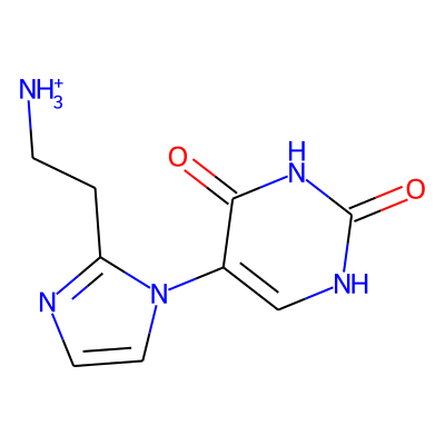 [NH3+]CCc1nccn1-c1c[nH]c(=O)[nH]c1=O| HBA: | 7 | RingCount: | 2 |