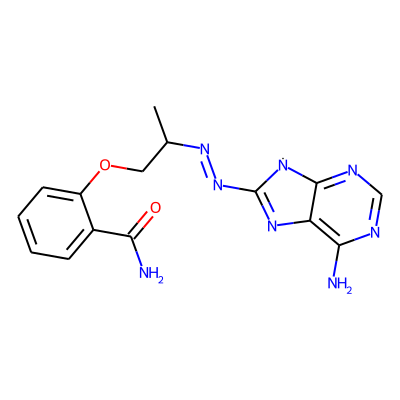 CC(COc1ccccc1C(N)=O)N=NC1=Nc2c(N)ncnc2[N]1| HBA: | 10 | RingCount: | 3 |